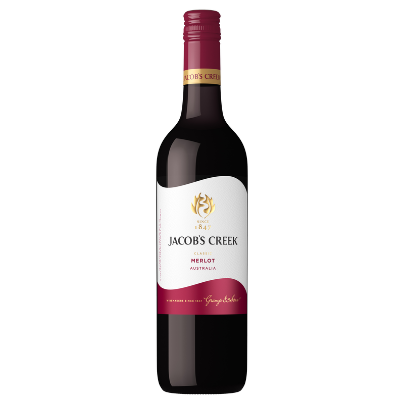 Jacob's Creek Classic range offers fresh, great tasting wines across a wide selection of popular varieties and blends. Jacob's Creek Classic Merlot has intense aromas of blackberry with spice and leafy notes. The palate shows vanilla and sweet dark berry fruits with mocha oak and lovely silky tannins. Enjoy with your favourite pasta or semi-hard cheeses like Edam.
